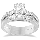 Diamond Baguette Engagement Ring and Wedding Band Matching Bridal Set in Platinum 0.60cw