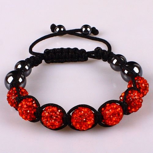 10mm Red Crystals Macrame 7pcs Beaded Shamballa Ball Adjustable Bracelet