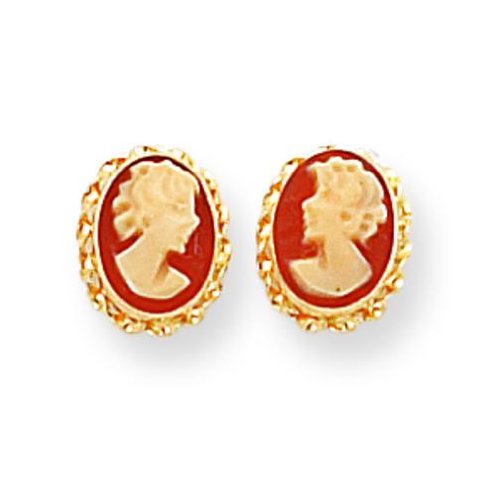 14K Yellow Gold Cameo Stud Earrings Polished Jewelry