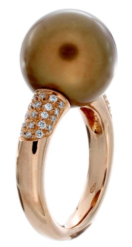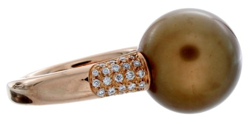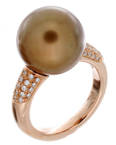 18ct Rose Gold Diamond & 13mm Tahitian Cultured Pearl Fancy Ring - Size N