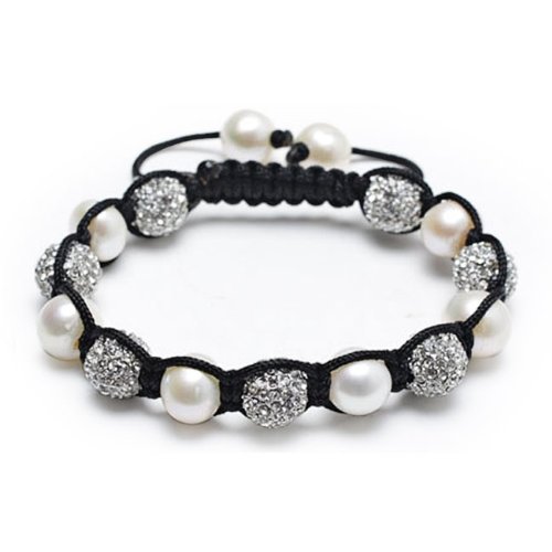 Bling Jewelry Shamballa Inspired Bracelet White Freshwater Pearl Clear Crystal 10mm