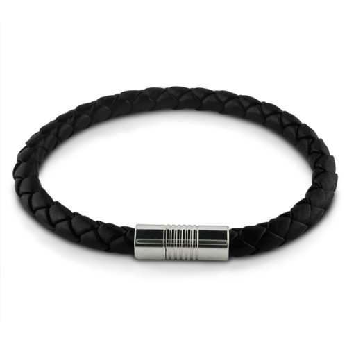 Braided 6mm Black Leather and Stainless Steel Magnetic Mens Bracelet (8 inches)