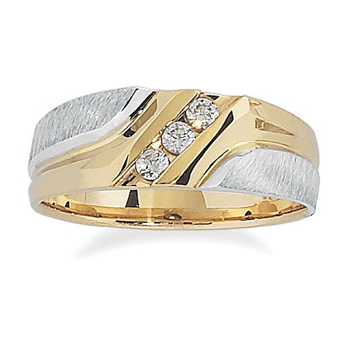 Men's 10k Two-Tone Gold Polished and Brushed Finish with Diamond-Accent Ring (0.15 cttw, H-I Color, I1-I2 Clarity), Size 11