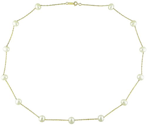 10K Yellow Gold 5.5-6mm White Cultured Freshwater Pearl Tin-Cup Necklace