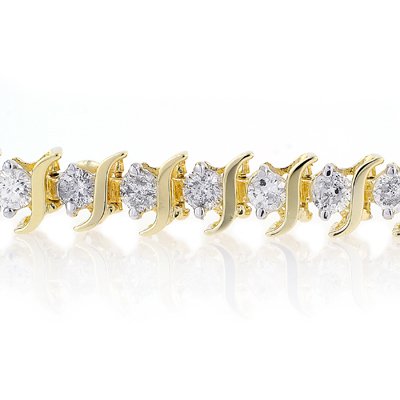 10K Yellow Gold Diamond S-Link Tennis Bracelet (2 cttw, J-K Color, I2-I3 Clarity) - 7"