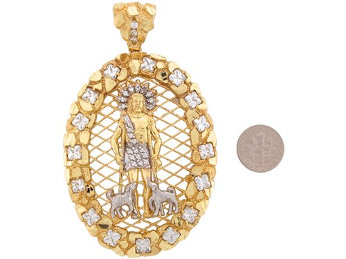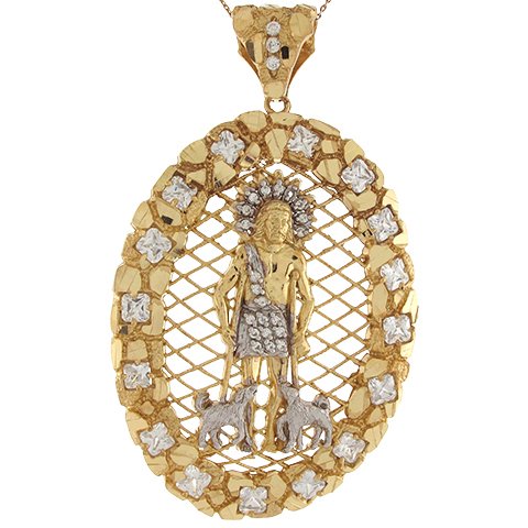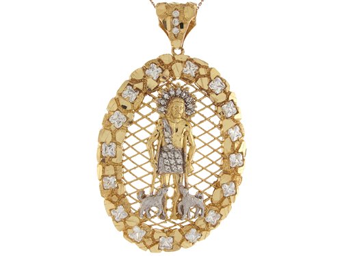 14ct Two Colour Real Gold White CZ Accent Oval Saint Lazarus 9.44cm Pendant