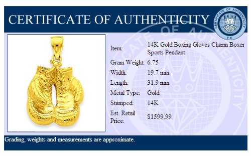 14K Gold Boxing Gloves Charm Boxer Sports Pendant