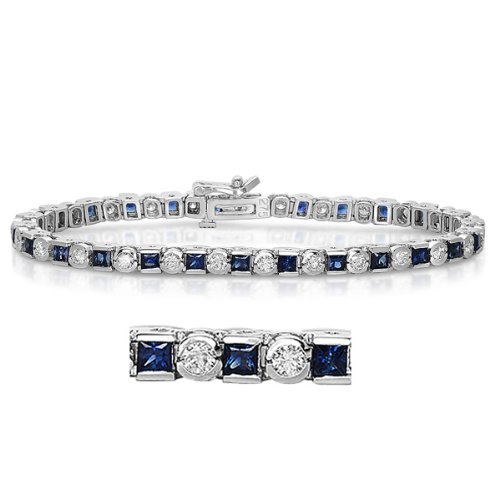 14k White Gold Sapphire./ Diamond Bracelet, Best Quality Free Gift Box Satisfaction Guaranteed