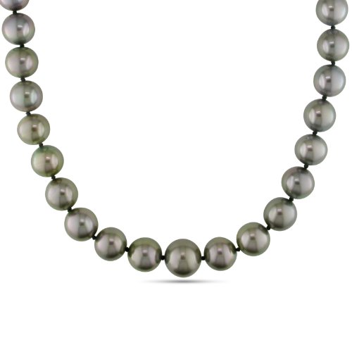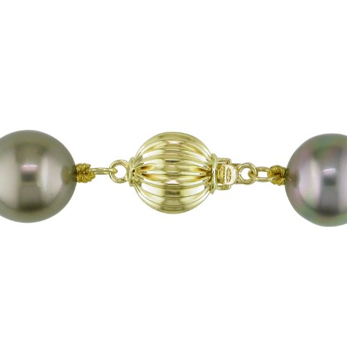 14k Yellow Gold 8.0-10.0 mm Graduated Round Tahitian Pearl Necklace, 18"