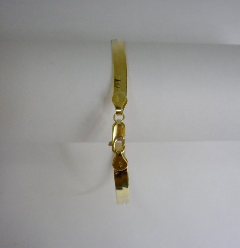 This 14k yellow gold Imperial Herringbone chain offers a modern bracelet look. At a 5.0 mm thickness, this chain is available in an 7 and Length 8 Inch length. Includes a lobster clasp to uphold strength and comfort.