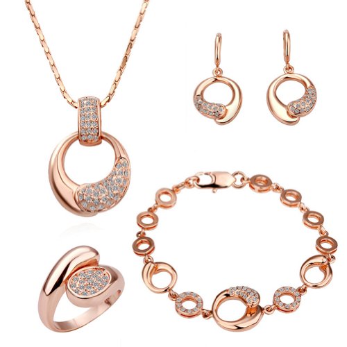 18k Rose Gold Plated Swarovski Elements Crystal CZ Rhinestone jewelry Sets Necklace, Bracelet, Earrings, Ring