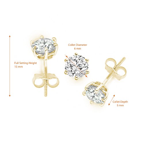 18k Yellow Gold F-Colour IF-Clarity Certified Fine Diamond Prong Setting Earrings. These diamonds are set in 18k Yellow Gold on a Prong setting.
