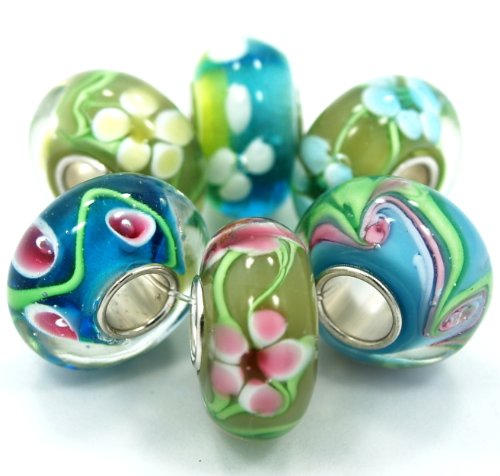 .925 Sterling Silver 6 Beads "Spring Mix" Fits Pandora Troll Chamilia Carlo Biagi Zable