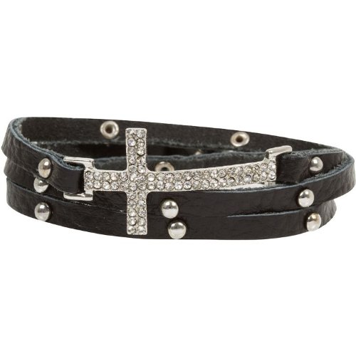 This trendy black leather wrap bracelet has a clear crystal pave move and silver tone studs. Finished with a buckle clasp, bracelet measures 23 inches long. Wrap bracelets make one of the best present as a result of they will fit nearly any measurement wrist. Your bracelet will arrive in a gift box – prepared for gift giving – OR – treat your self.