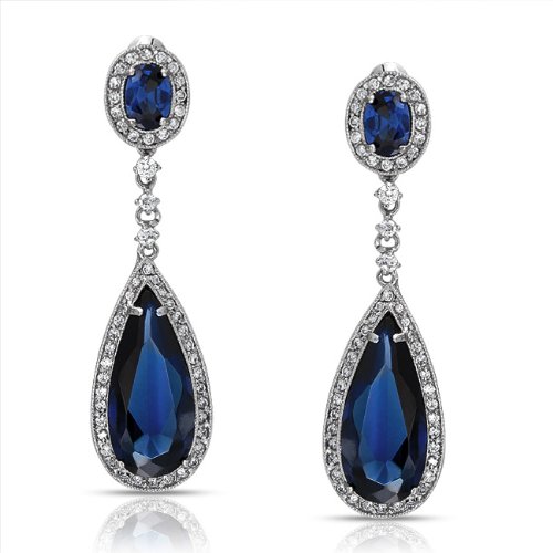 Bling Jewelry Pave CZ Sapphire Color Teardrop Chandelier Earrings Screw Back Clip On