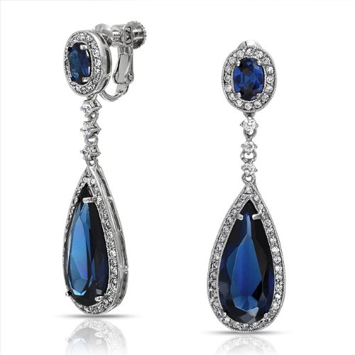 - Sapphire Color Teardrop Clip Ons
