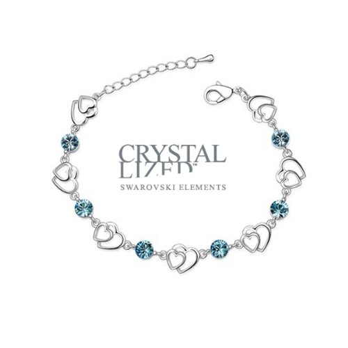 Blue Heart Swarovski Element Crystals Bracelet This bracelet is in 18K white gold plated (3 layers). The hearts are separated by blue Swarovski Element Crystals. length : 16 cm (adjustable).