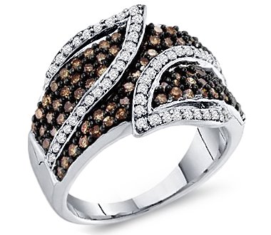 Brown Chocolate Diamond Ring Womens Band 10k White Gold (1.00 Carat). Brown & White Diamond Fashion Ring 10k White Gold (1.00 Carat).