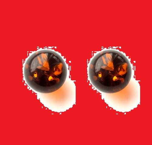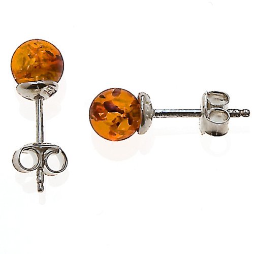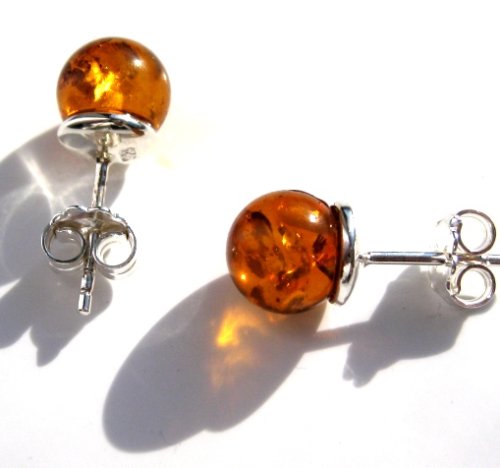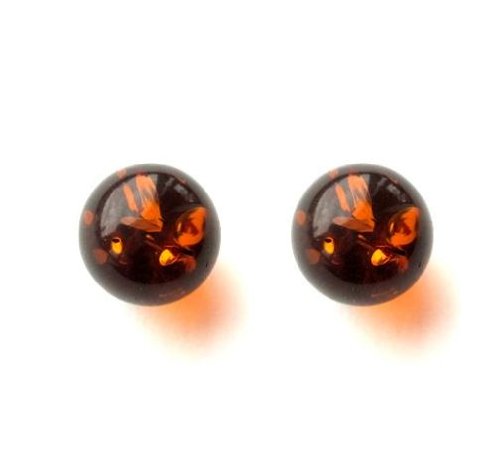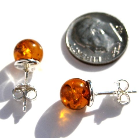 Certified Genuine Honey Amber and Sterling Silver Small Stud Ball Earrings, 8mm