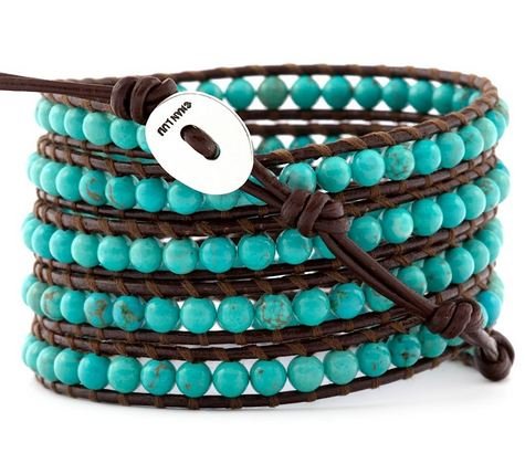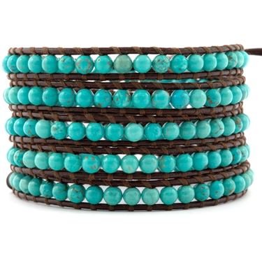 Chan Luu Turquoise Wrap Bracelet on Brown Leather