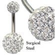 Crystal belly bars by BodyTrend © - surgical steel bar length 10MM - hand made with over 100 swarovski crystals - bling bling!! - top ball is 6MM, bottom ball 9MM - packed in a lovely velvet pouch