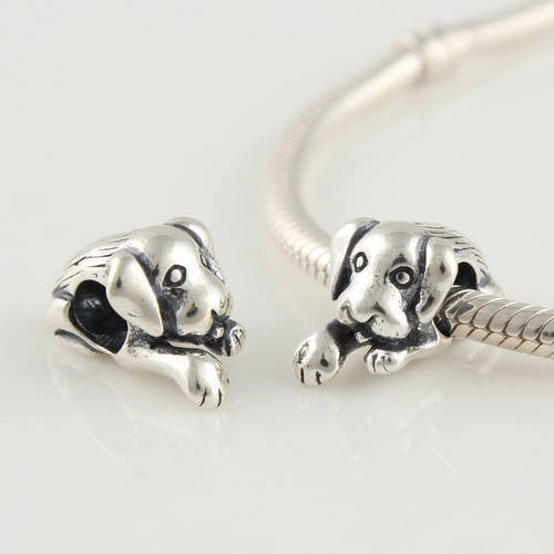 This cute dog charm is cast of solid .925 sterling silver. It is compatible with Pandora, Troll, Chamilia, Biagi, and other jewelry, and interchangeable with Pandora charms / beads! Made of Sterling silver, perfect gift for any occasion. This only for one bead, chain not included.