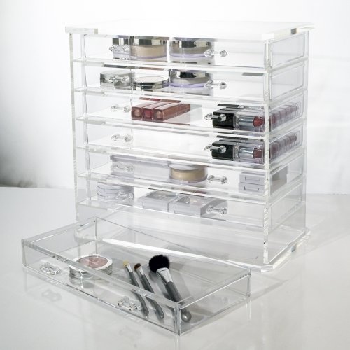 Deluxe 7-drawer Acrylic Jewelry Chest or Cosmetic Organizer with Removable Drawers and Liners