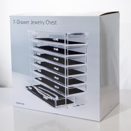 When the standard jewelry box simply isn't enough storage, this 7-drawer chest is ample! Made of sturdy, durable acrylic and beautifully designed to display on your bedroom dresser or vanity. The clear acrylic allows you to easily see the contents. The drawers slide completely out and maneuver very smoothly. The removable foam liners keep contents from shifting so your necklaces won't tangle. Use each drawer to organize different items – earrings, necklaces, bracelets, rings, brooches, and all kinds of accessories. The drawers keep your items dust and lint-free. Also an excellent chest for storing makeup as well as small craft items, sewing notions, and whatever small items you may have that need to be organized!