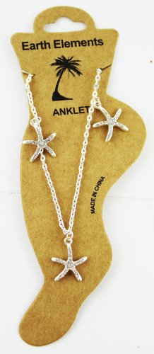 Diamond & Starfish Dangle Anklet - Silver Starfish w/ White Cubic Zirconia Po...