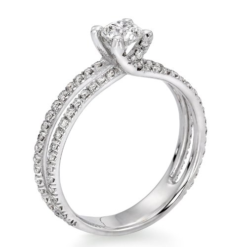 Meticulously crafted in 585 Gold, this exclusive design by NATURAL DIAMOND is available to you directly from the source. The 'Brenta' design is set with 81 diamonds, weighing 0.97 ctw. Featuring a sparkly 0.59ct center stone, graded E / VVS2 natural diamond this beautiful piece is available in 14K gold, 18K gold or platinum.