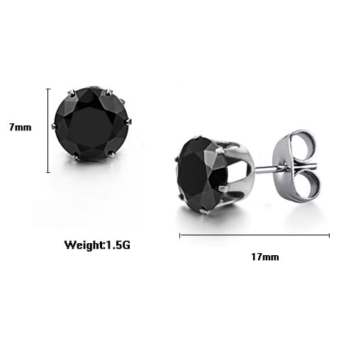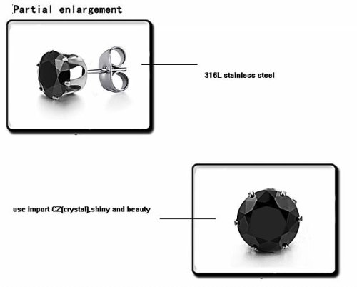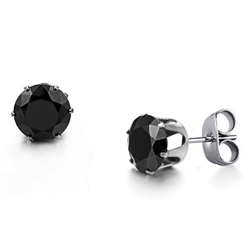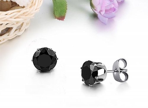 - Fashion Shiny Black Cz Diamond Titanium Men's Stud Earrings