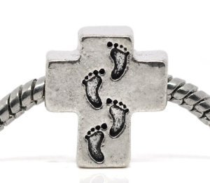 " Foot print on Cross "Bead Charm Spacer Pandora Troll Chamilia Biagi Bead Compatible