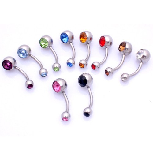 pack of 10 double jewel surgical steel belly/navel bars available in sizes 6mm,8mm,10m,12mm,14mm email seller for size you require or average size 10mm will be dispatched