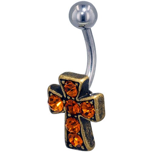 Pugster 316L Surgical Steel Belly Button Rings Gold Orange Crystal Celtic Cross Fashion October Belly Navel Ring Body Jewelry