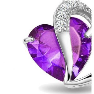 Rhodium Plated Diamond Accent Amethyst Heart Shape Pendant Necklace Including Singapore Chain '18 inch