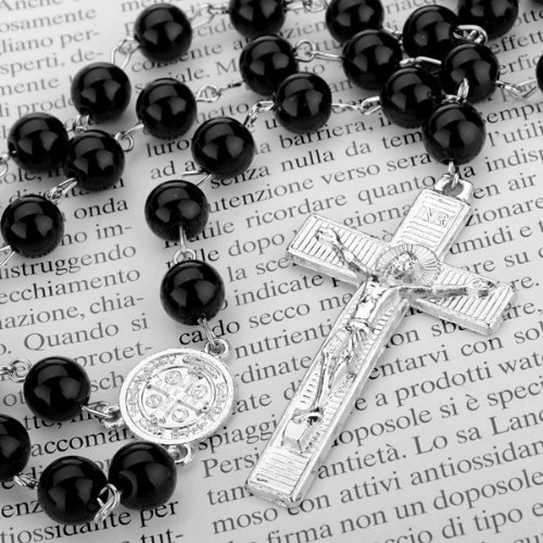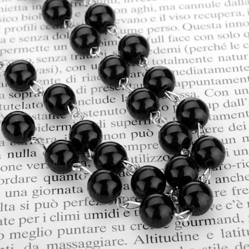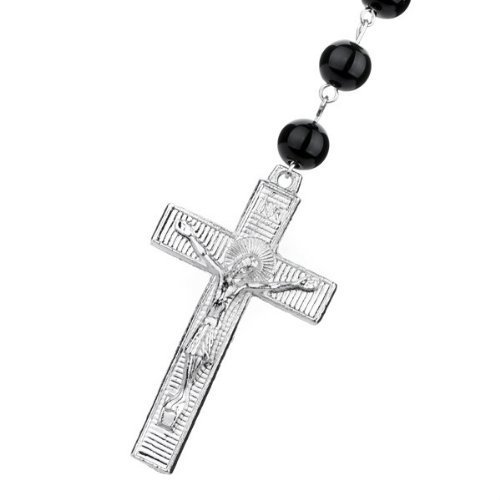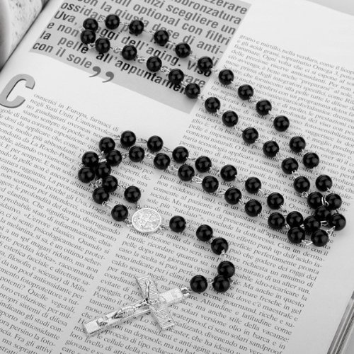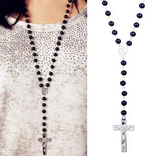 Rosary Black Bead Crucifix Cross Pendant Chain Necklace