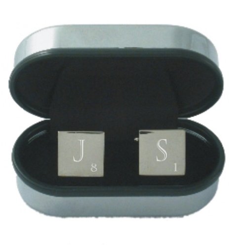High quality rhodium plated cufflinks engraved with your personal requirements in the style of a Scrabble tile and supplied in a chrome presentation case. You can choose a letter and number for each link. A great novelty gift for those hard to buy for males
