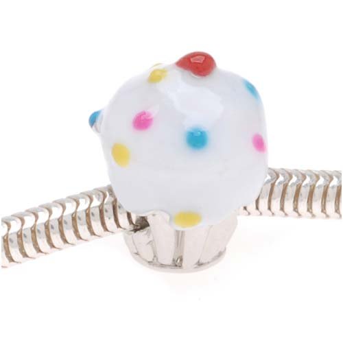Silver Tone Cupcake Bead With White Enamel Frosting And Sprinkles - Fits Pandora (1)