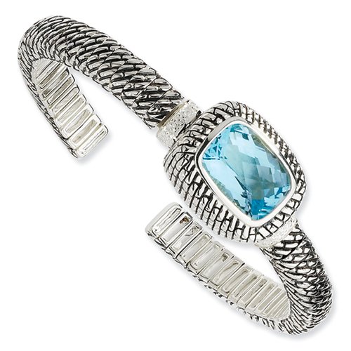 Sterling Silver w/14k Gold 31.50Sky Blue Topaz Cuff Bracelet