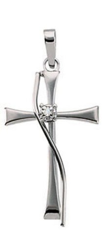 0.010tcw 14 Karat White Gold Diamond Cross Pendant with 16 Inch chain