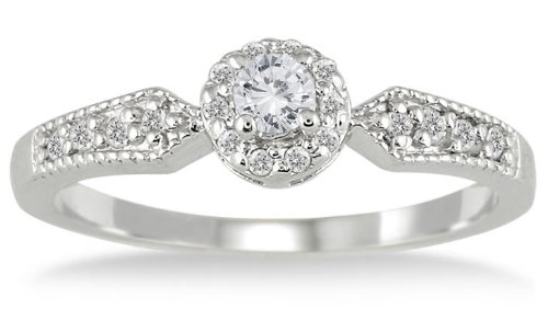 1/4 Carat Diamond Antique Ring in 10K White Gold