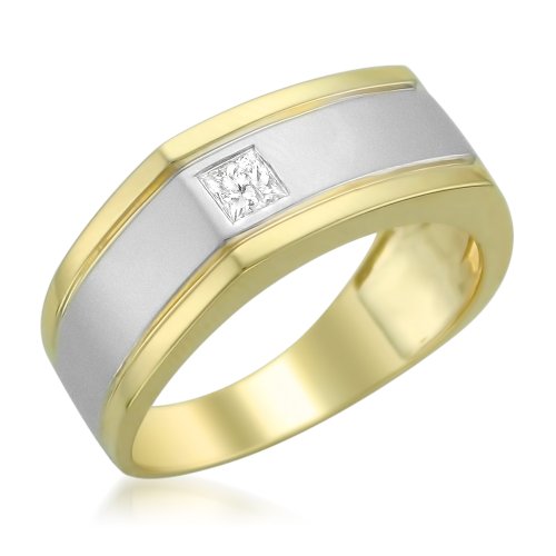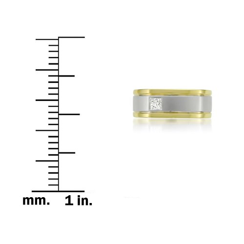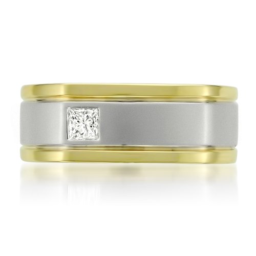 As you vow your devotion and eternal love to the special person in your life, the perfect symbol is this 1/5 cttw men's diamond wedding band. This show-stopping ring features a gleaming Princess-cut diamond well-crafted off center of the 14K two-tone gold band. Perfect for any wedding, anniversary, birthday, Christmas, Valentine's Day, or Father's Day gift, this men's wedding band ring will stand out! Additionally, we guarantee our diamonds are conflict-free and in accordance with the Kimberley Process Certification System, a UN-backed practice that certifies that origins of our diamonds are from sources free of conflict and acquired through friendly mining.