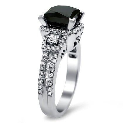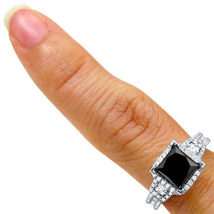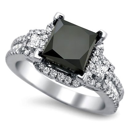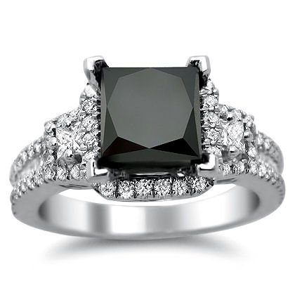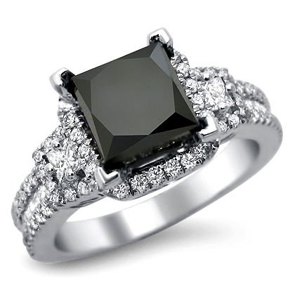 2.75ct Black Princess Cut Diamond Engagement Ring 18k White Gold