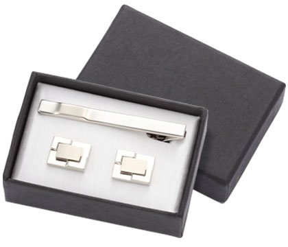Aeropen International CUT-02 2 Tone Silver Metal Cufflinks with Matching Tie Clip