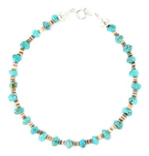By Navajo artist Naomi Garcia: Beautiful! 10 inch Genuine Turquoise Navajo Women's Anklet