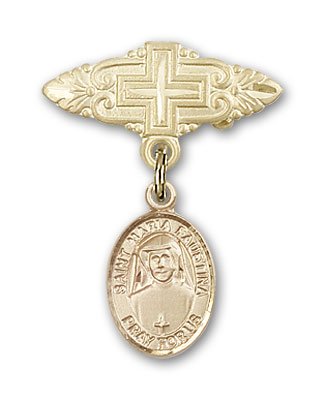 - Gold Filled Baby Badge with St. Maria Faustina Charm and Badge Pin with Cross
