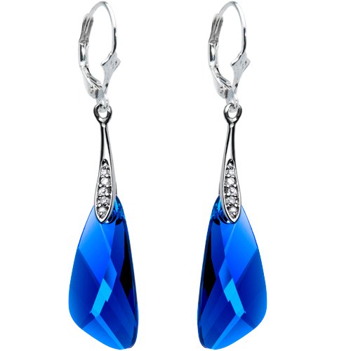 Handcrafted Sapphire Blue Austrian Crystal Inspire Earrings MADE WITH SWAROVSKI ELEMENTS