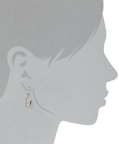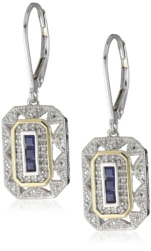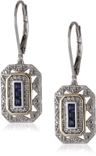 S&G Sterling Silver and 14k Yellow Gold Blue Sapphire with Diamond-Accent Art Deco Style Drop Earrings (0.13 cttw, I-J Color, I2-I3 Clarity)