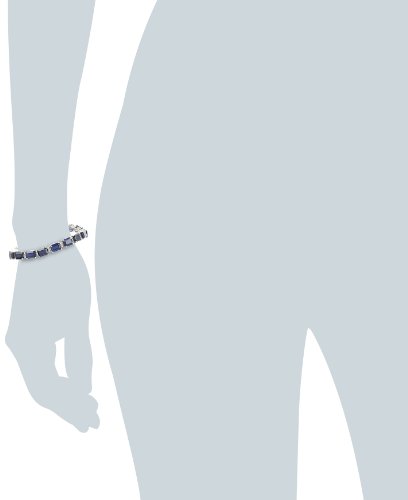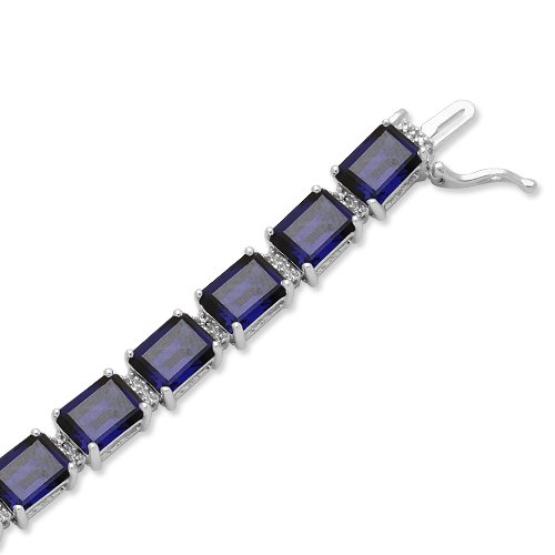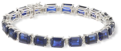Sterling silver emerald cut created sapphire with genuine white diamonds bracelet (0.005 cttw, i-j color, i2-i3 clarity), 7.50″