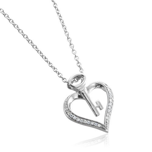 This romantic and trending Key My Heart-Shaped Diamond Pendant is gorgeously rendered in shimming Sterling Silver and studded with sparkling icy white diamonds. It dangles beautifully from a 18 inch long sterling silver cable chain. Heart is a symbol of love and joy and Key is the secret formula to open the heart. Key My Heart is the best way to show your love to your love one. Let her know you love and care. A timeless and charming Heart Diamond Pendant is the best jewelry for all occasions and outfits. Nothing can be lovely than this beautiful heart diamond pendant.